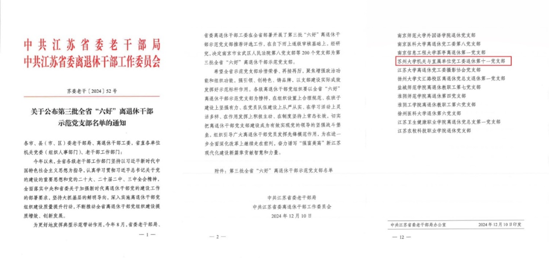 近日,省委老干部局、省委离退休工委公布第三批全省“六好”离退休干部示范党支部名单,我校机关与直属单位党工委退休十一支部入选。