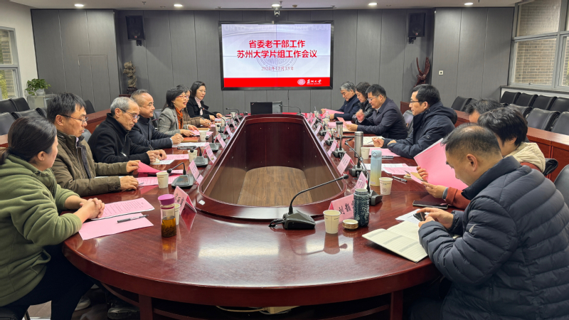 为进一步促进老干部工作经验交流,提升片组老干部工作整体成效,12月13日下午,省直单位老干部工作苏州大学片组工作会议在我校召开。省委老干部局办公室主任张军一行参会指导,我校党委常委、副校长查佐明出席会议并致辞。苏州大学片组10所高校离退休工作负责人参加会议。会议由离退休党工委书记、离退休工作部(处)部(处)长陈彦艳主持。