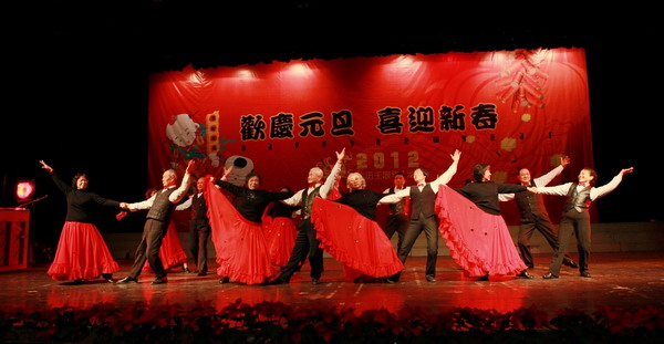 本次演出活动的主题是“载歌载舞展风采,祥和快乐迎新年”,既是营造欢乐的迎新氛围,也是提供老年学院教学成果汇报的舞台。老同志们自编自演了11个节目,形式有大合唱、舞蹈、现代京剧、沪剧、诗朗诵、太极拳与健身操表演等,演出中间还穿插有抽奖活动。老同志们在一起,既欣赏节目表演,又是难得的交流机会,可谓是其乐融融。