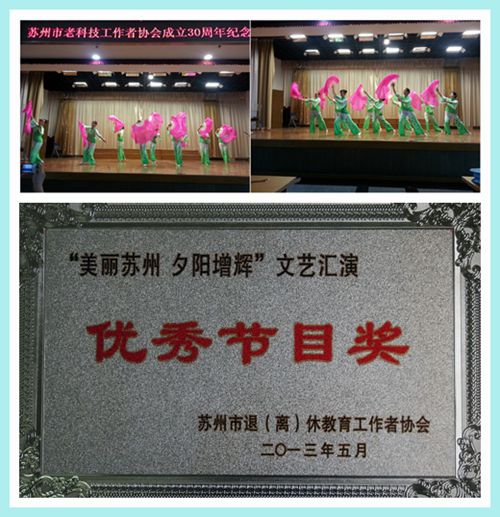 凭着对舞蹈的热情和执着,舞蹈队坚持每年至少排练一个新节目。近几年来,先后积累了《五星红旗》、《再唱山歌给党听》、《天路》、《卓玛》、《中国的春天》、《多彩的哈达》等优秀舞蹈节目,取得了一连串可喜成绩:《五星红旗》和《卓玛》在苏州市老科协文娱演出专场大放异彩;《中国的春天》在“美丽苏州夕阳增辉”活动中被授予优秀演出奖。舞蹈队还先后多次受邀为本校的师生新年联欢会、材化部迎新年晚会和离休干部迎春茶话会表演,丰富了校园的文化生活。除了参加各种演出和比赛外,舞蹈队还曾赴苏州市福利院等地进行慰问演出,把欢乐送到了苏州的各个角落。