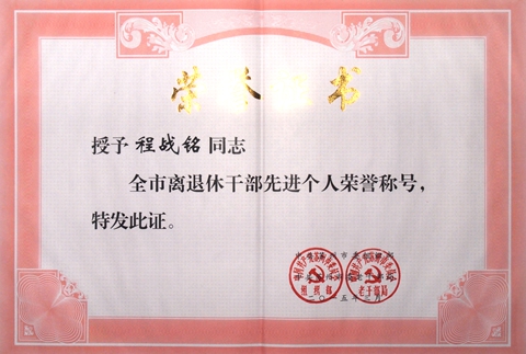 程战铭老师作为一名年届78岁的基层老体育工作者、老党员,为老年工作、体育工作付出了辛勤的汗水,也收获了累累硕果,真正做到了老有所学、老有所乐、老有所为。