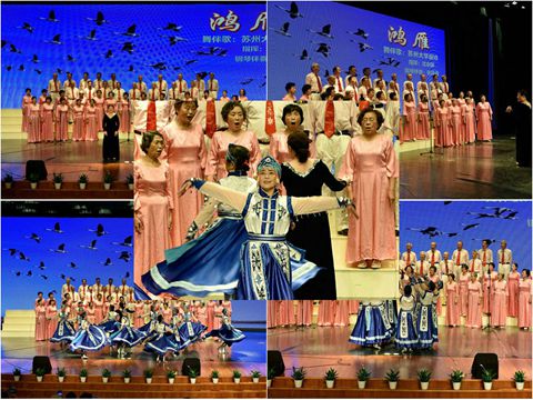 2017年5月20―21日,苏州市退教协会在江苏省苏州中学举办“霞光溢彩夕阳美――庆祝中国人民解放军建军90周年文艺汇演”,苏州大市范围内51家单位和团体参加了演出。苏州大学老教师艺术团50余位退休教职工呈上了舞伴歌《鸿雁》。