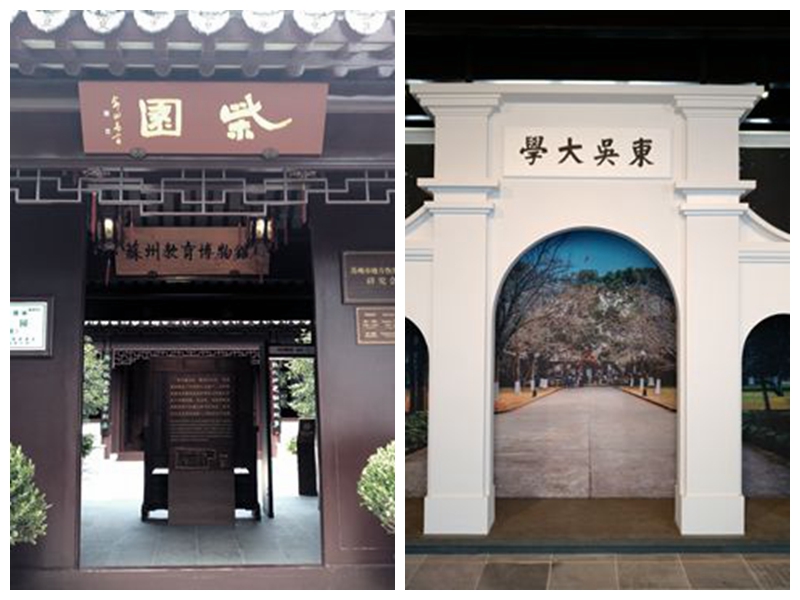 2017年教师节,位于醋库巷44号的苏州市教育博物馆正式对外开放。博物馆占地面积6.6亩,是苏州市文物保护单位清代古典园林――"柴园"的所在地,由古代馆、近代馆、现代馆、名人馆、名师馆、荣誉馆等11个展馆组成,将苏州教育的千年魅力和当代风采与苏州园林的美学意蕴融为一体。在这里,我们看到了东吴大学校门的微缩景观;在这里我们还看到了苏州大学退休教师郁乃尧的捐赠物品。