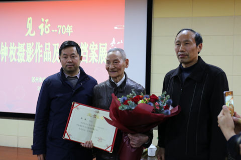 苏州市委老干部局副局长邵建清为钟老颁发了荣誉证书,我校离休党工委书记、离退休工作部(处)部(处)长余宏明为钟老敬献了鲜花,衷心祝贺钟老取得摄影事业的伟大成就!