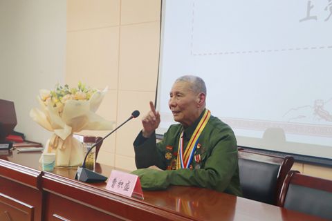 作为一名党龄超过七十年的老党员,曹老说,无论走的多远,仍不忘来时路。他回顾了中国共产党的百年历程,分享了他的峥嵘岁月和初心故事,带领大家重温了那段可歌可泣的烽火岁月。1945年,年仅15岁的曹积盛在山东烟台参加革命,成为一名八路军小战士,参加过孟良崮战役、济南战役、淮海战役、抗美援朝战争,数次被炮弹弹片击中,身负重伤,最后九死一生回到祖国。他声情并茂地讲述着自己作为老党员老战士几十年来所经历的、所参与的、所见证的历史,感叹革命胜利来之不易,更感叹如今和平幸福、国泰民安的珍贵。他表示学习百年党史是一种传承。党员要时刻严以律己,重视规矩,约束行为,做到心中有信仰,肩上有担当,脚下有力量。回望党的历程,才能更好地汲取信仰力量。去年新冠疫情爆发以来,曹老不顾自己年事已高,亲自向学校组织部和市委老干部局缴纳特殊党费4万元,用自己的实际行动书写了一名老党员的初心使命。