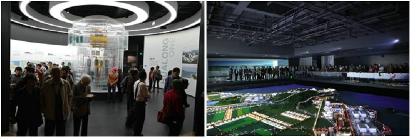 讲解员带领大家移步参观。首先介绍了中国核电的发展历程,从无到有、从小到大。目前国内正在运营的核电站有44座,数目居世界第三;在建核电站数13座,世界排名第一。人群里,顿时啧啧的赞叹声不断。有的说:“真没想到我们核电站这么多啊,难怪现在家家户户空调冰箱的,也从来不停电”;还有人说“真没想到我们发展的这么快,真值得自豪和骄傲”……